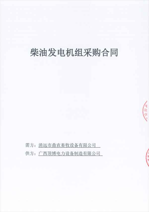 祝賀清遠(yuǎn)市鼎農(nóng)畜牧設(shè)備有限公司成功簽訂兩臺(tái)柴油發(fā)電機(jī)組