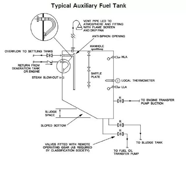 一般情況下室外油罐采用埋地式,依靠日用油箱與室外油罐之間的高差,可實(shí)現(xiàn)重力回油。